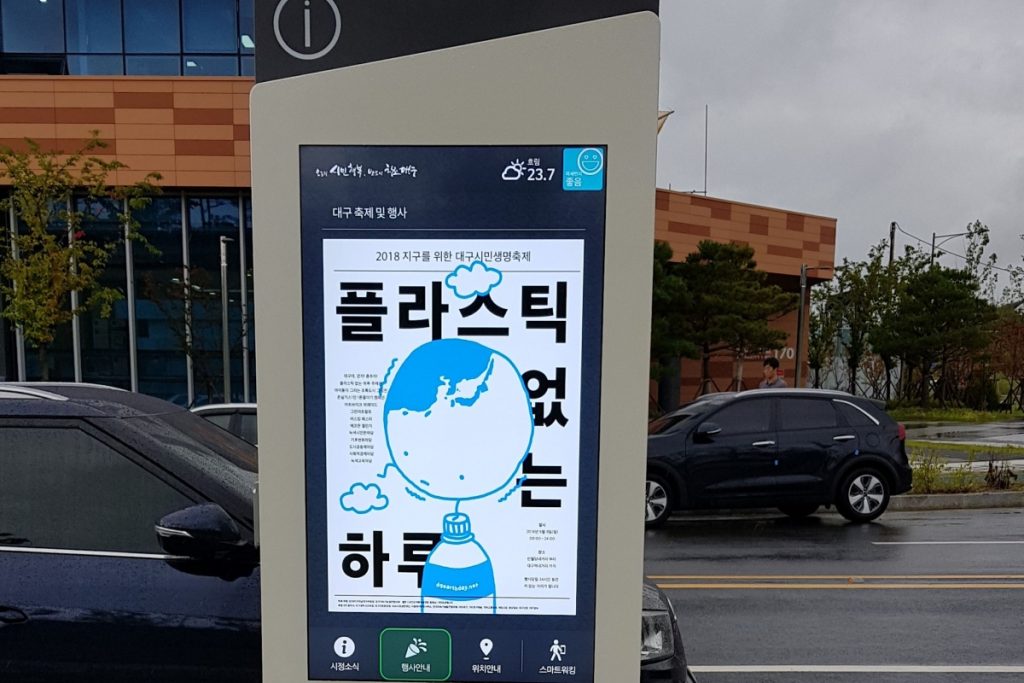 Najveći južnokorejski bežični operater SK Telecom i pružatelj digitalne signalizacije QVOSS zajedno su razvili mrežu pametnih gradskih kioska u Daeguu (trećem najvećem gradu u Južnoj Koreji). Ovi pametni kiosci sada su važne komponente infrastrukture za upravljanje katastrofama u gradu. Oni prenose vitalne javne informacije tijekom katastrofe, uključujući potres, poplavu ili požar. Osim toga, mogu također emitirati gradske vijesti i ljudima pružati smjernice za lokaciju koju traže.
