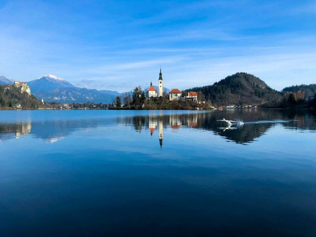 „Za vedrog dana, staklasta voda odražava drveće i zelene planine koje okružuju jezero, kao da tjera oblake.“ piše Rose Johnstone, voditeljica komercijalnog sadržaja Time Out-a. „Vaše oči odmah privlače mali otok u njegovom središtu, na kojem se nalazi crkva Marije Kraljice. A taj tihi zvuk zvonjave? To je zvono želja u zvoniku od 52 metra, kojim turisti zvone kao nagradu za uspon uz 99 stepenica do vrha.“