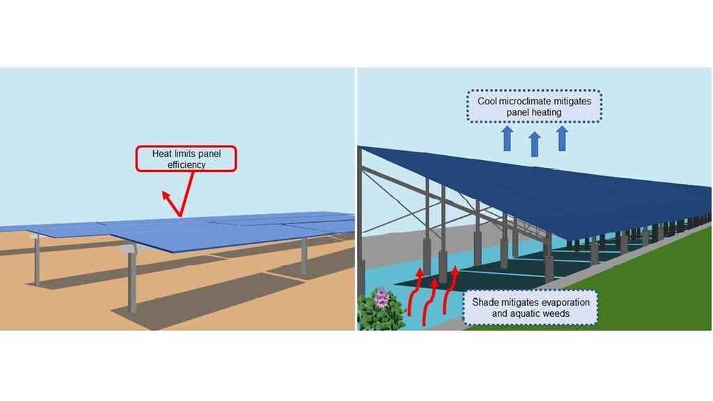 Još 2014. godine u sklopu pilot-projekta u Gujaratu u Indiji postavili su solarne ploče na preko 750 metara kanala za navodnjavanje kako bi se smanjilo isparavanje vode. To je dovelo do toga da je Indija izgradila cijelu solarnu elektranu na vrhu kanala u okrugu Vadodara, a drugu preko rijeke Narmade, ukupne snage 100 megavata.