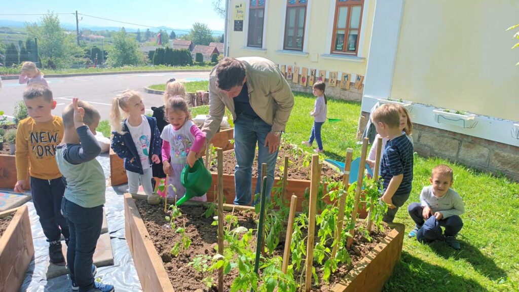 Donirane sadnice povrća i začinskog bilja vrijedne dječje ručice sadile su u gredice, te usput učili koje su sve radnje potrebne kako bi u konačnici mogli uživati u plodovima.