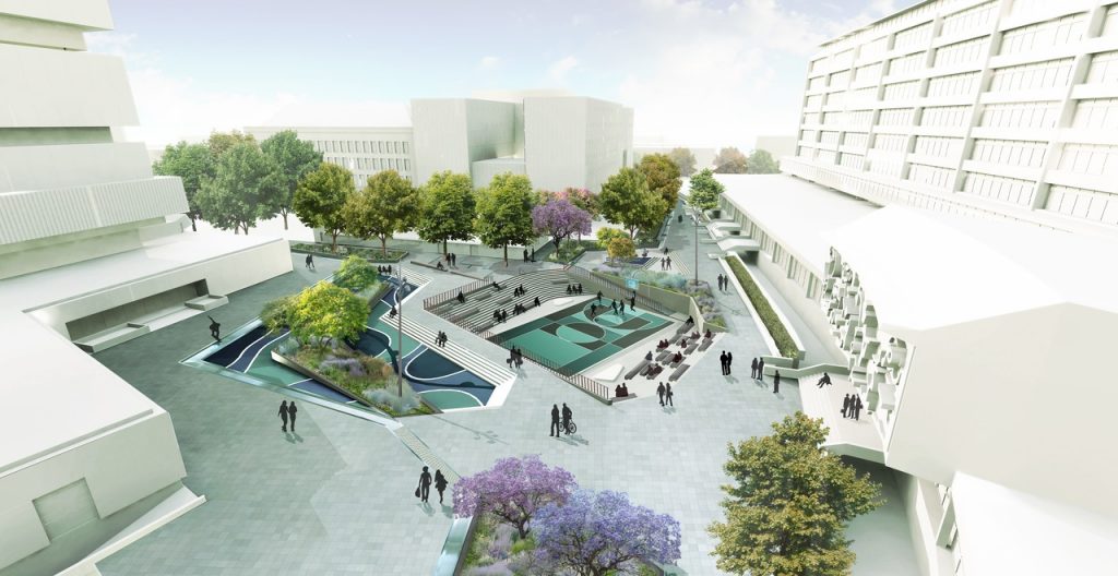 Osim trgova i garaža, ulogu u sakupljanju, zadržavanju i kasnijem ispuštanju oborinskih voda imaju i gradski parkovi i urbani vrtovi. Ovaj koncept obrane od padalina gdje se grad ponaša kao neka velika spužva koja je u stanju i primiti i istisnuti vodu naziva se ”sponge city”.