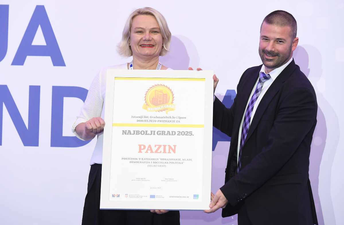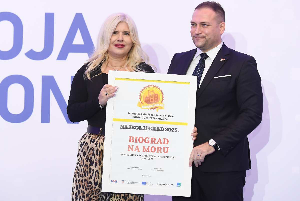 U kongresnoj dvorani šibenskih Amadria Park hotela je održana svečana dodjela nagrada “Najbolji grad 2025.” i “Najbolji EU projekt 2025.” u sklopu nacionalne konferencije „Dani regionalnoga razvoja i EU fondova 2025.”. Dodjelu smo, kao i u prethodnih sedam godina, organizirali u suradnji s Jutarnjim listom i agencijom Ipsos, uz podršku Ministarstva regionalnog razvoja i fondova Europske unije. Na događanju je, uz domaćine – gradonačelnika Šibenika Željka Burića i župana Šibensko-kninske županije Paška Rakića – sudjelovala i Vladina delegacija na čelu s premijerom Andrejom Plenkovićem, potpredsjednikom vlade i ministrom poljoprivrede Davidom Vlajčićem, ministricom regionalnog razvoja i fondova Europske unije Natašom Mikuš-Žigman te ministricom zaštite okoliša i zelene tranzicije Marijom Vučković.