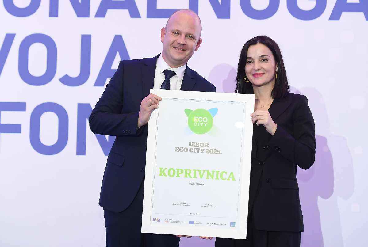 Kao i u kategoriji najvećeg napretka, bira se samo jedan „najzeleniji“ grad, a priznanje je namijenjeno sredinama s najvećim dostignućima u zaštiti okoliša, energetskoj učinkovitosti i zelenoj tranziciji. Najbolji Eco City za 2025. godinu je Koprivnica, koja preuzima naslov od prošlogodišnjeg pobjednika Osijeka. Koprivnica je u Eco City kategoriji pobjeđivala i ranije, 2019. te 2023., a ove godine sučelila se s Bjelovarom, Krkom, Porečom i Varaždinom. Gradonačelniku Mišelu Jakšiću plaketu je dodijelila Marija Vučković, ministrica zaštite okoliša i zelene tranzicije.